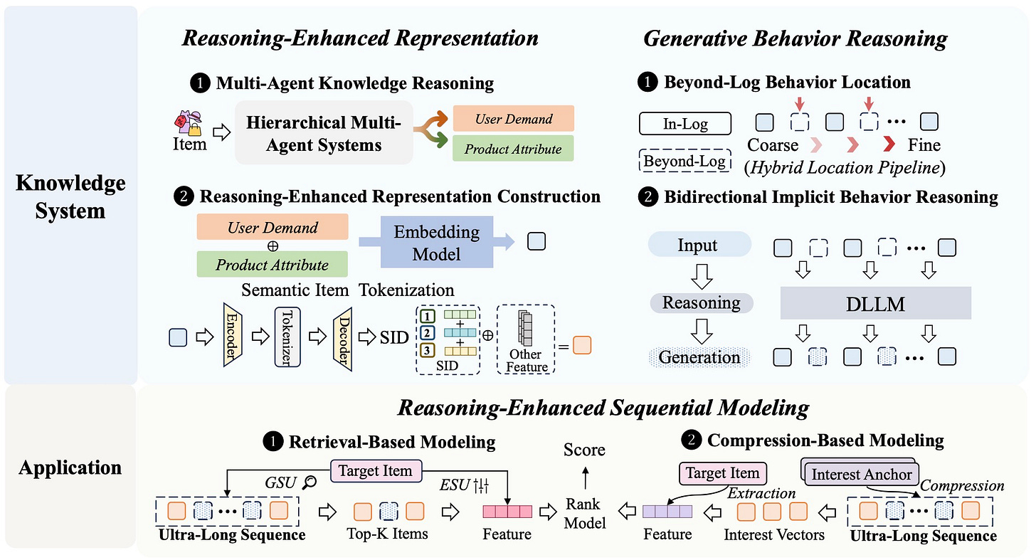 ReaSeq solves two problems in recommender systems: knowledge poverty in ID-based representations and systemic blindness to off-platform user interests. The framework uses reasoning to incorporate world knowledge into sequential modeling.